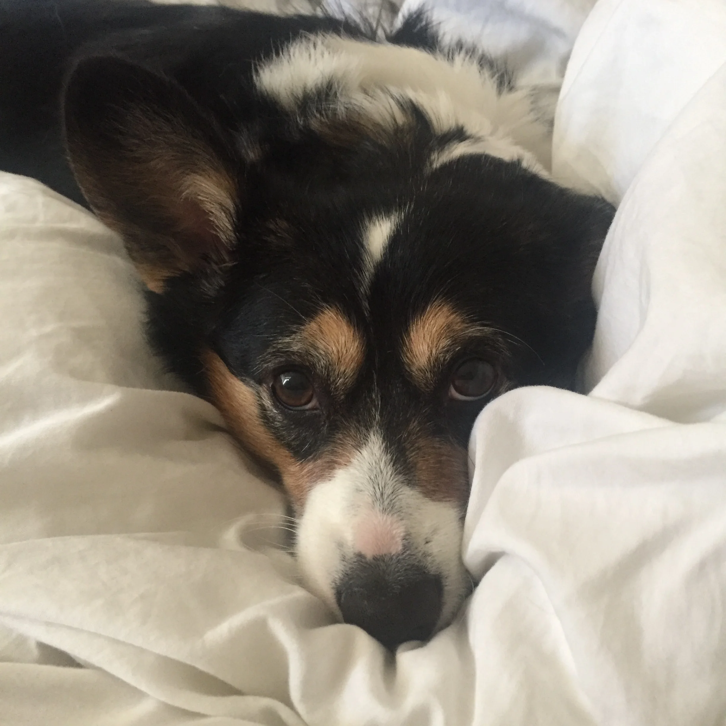 Mochi was born in San Jose, California on November 11, 2009 and has been accompanied by her adopted sister-cat, Dragon. Her favorite tricks include sit, whirlwind attack, and balancing various items on her snout. Not only is Mochi known as the "Best Balneg," she is also a hero to all, saving their home from a fire by alerting them of their toaster engulfed in flames. Despite her charisma, intelligence, and captivating good looks, she has gone through her remarkable weight loss journey and now enjoys crossfit, a balanced diet, and snacking on carrots. Kristina, Ben, and Mochi share many common interests such as food and sleeping.